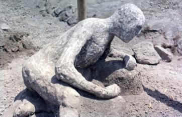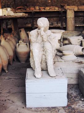 Comme nous avons pu le voir dans le premier article consacré aux cités du Vésuve, lors de l’éruption, les corps de Pompéiens ont été emprisonnés dans de la matière volcanique. Cette matière volcanique s’est solidifiée autour des corps des Pompéiens avant que ces derniers ne se décomposent. De ce fait, la matière volcanique s’est transformée en une sorte de moule, une cavité vide conservant la forme des corps. Fiorelli prend bien vite conscience de la présence de ces cavités lors des fouilles. Il décide alors d’y faire couler du plâtre pour découvrir ce qu’elles contenaient. Après quelques ratés, il arrive à mouler le corps de Pompéiens dans leurs derniers instants. Ces moulages ont suscité de vives émotions à l’époque puisqu’ils rendaient compte des dernières secondes de vie des Pompéiens, leurs vêtements, leurs attitudes ou encore leurs expressions. Ils sont des témoignages uniques et émouvants du drame de 79.