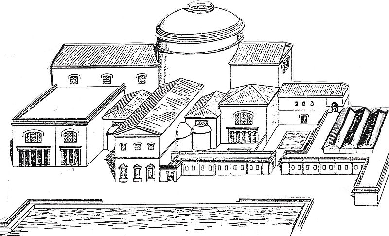 Le mot “thermes” désigne un établissement de bains publics dans la Rome Antique. Mais, au delà des bains, on peut y trouver de nombreux services dédiés au soin du corps et de l’esprit. Les premiers bains sont attestés dans le domaine privé au IIIe siècle avant notre ère. Il s’agit de lieux très modestes, sombres et de petite taille. Les bains publics font leur apparition au IIe siècle avant J.-C., grâce aux contacts avec le monde hellénistique. Les premiers thermes font quant à eux leur apparition en 19 avant notre ère avec les thermes d’Agrippa, le conseiller de l’empereur Auguste (27 – 14 avant J.-C.).