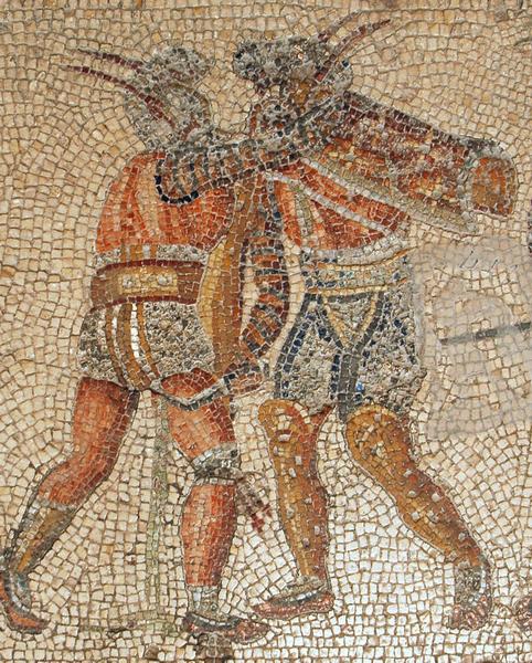 La gladiature romaine tire son origine des duels organisés lors des cérémonies funéraires. Progressivement, le contexte funéraire a disparu et la pratique de la gladiature est devenue une pratique visant à divertir les Romains. Les jeux prennent place dans les amphithéâtres. Ces derniers sont tout d’abord des constructions éphémères en bois. Rapidement, les structures deviennent permanentes avec une construction en pierre. L’amphithéâtre le plus célèbre du monde romain est l’amphithéâtre de Flavien à Rome, aujourd’hui connu comme le Colisée et construit au Ier siècle de notre ère.