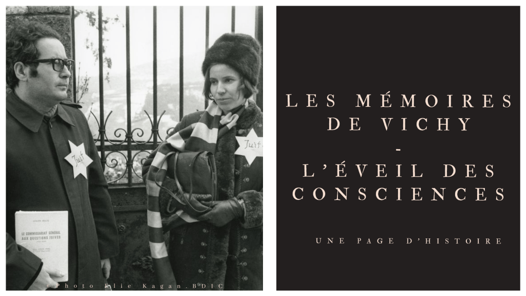 En 1958, De Gaulle est rappelé au pouvoir et la V° siècle République par Référendum et on ne parle plus que par la voie de l’Homme du 18 juin. Vichy est enterrée sous une profonde chape de l’oubli. Pourtant, la France subit un électrochoc à travers mai 1968. A cette occasion, le passé de la Seconde guerre mondiale et l’occupation refont surface dans les affiches des étudiants. De ce fait, les CRS sont comparés aux SS et De Gaulle à Hitler. On interroge la génération précédente là où quelques années au par avant on ne voulait pas parler du passé.